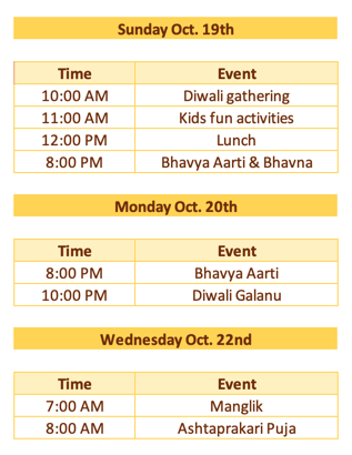 It is a great time of the year again where we will be celebrating Shree Mahavirswami Bhagwan's Nirvan Kalyank and Shree Gautam Swami's Keval Gyan Kalyanak. This year we will celebrate Deepawali and Bestu Varash (New Year) on Monday, Oct. 20th and Wednesday, Oct. 22nd. Please review the details for the celebrations below.